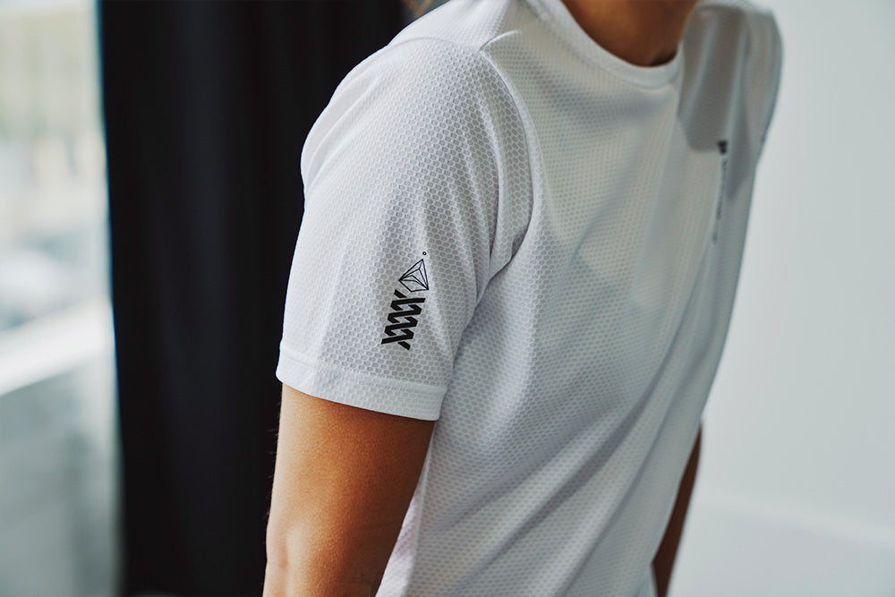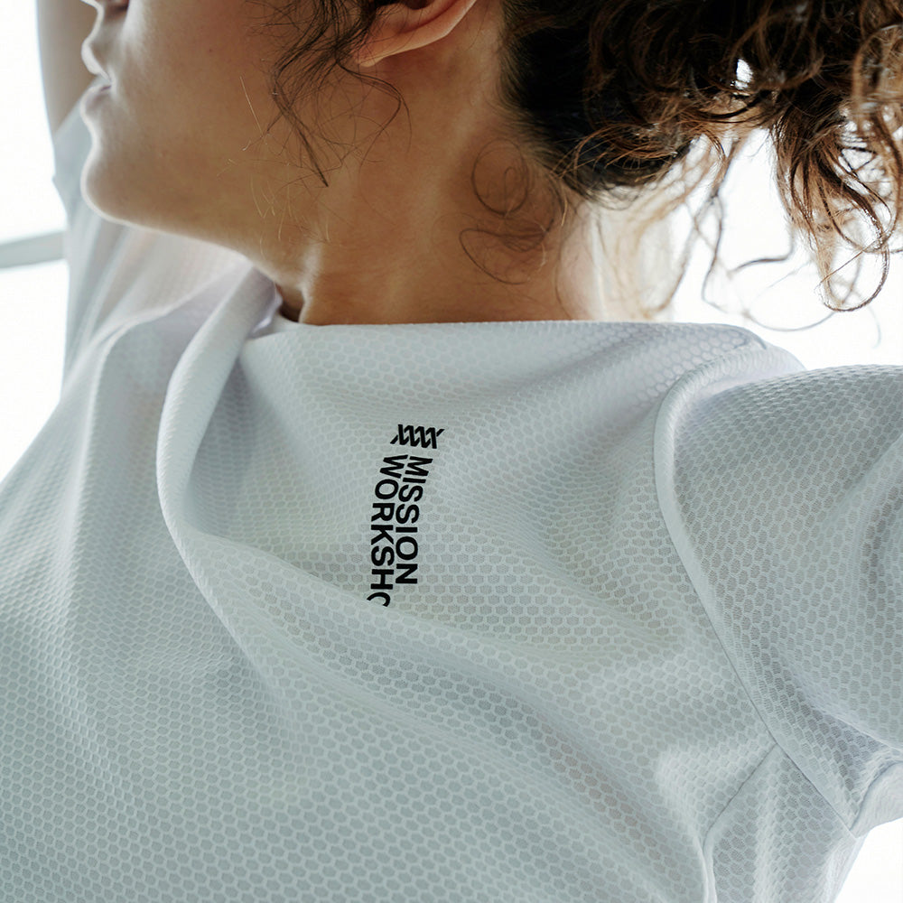 La camiseta Mission Pro Tech está confeccionada con una malla dimensional italiana de punto abierto que aumenta exponencialmente la superficie de transpiración y secado rápido. La mejora de la transpiración se consigue mediante dos hilos diferentes que crean un diferencial que aleja la humedad del cuerpo. Funciona perfectamente como capa base, como alternativa al maillot o simplemente como camiseta de alto rendimiento.