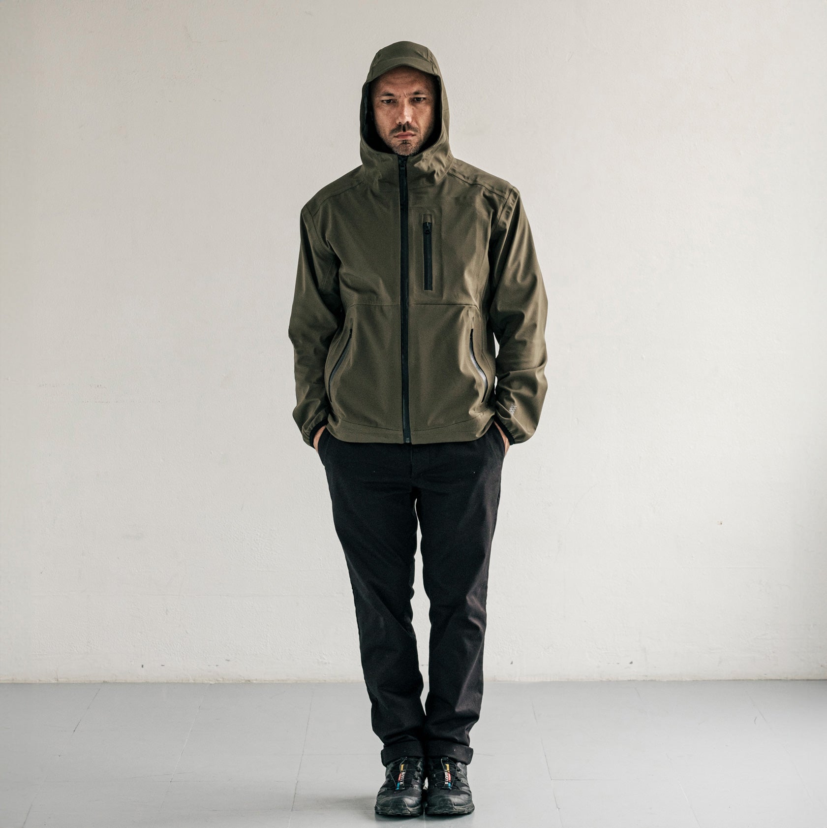 Constructed with Brookwood Assault® 3-layer fabrics. This high-spec fabric is 100% made in USA and features an advanced DWR that is treated on a molecular level. Each individual fiber is coated to ensure a more open, porous membrane, faster vapor transmission, and increased ventilation. MVTR(Moisture Vapor Transfer Rate): minimum 20k g/m²/24hr. Water Resistance: minimum 20k mm