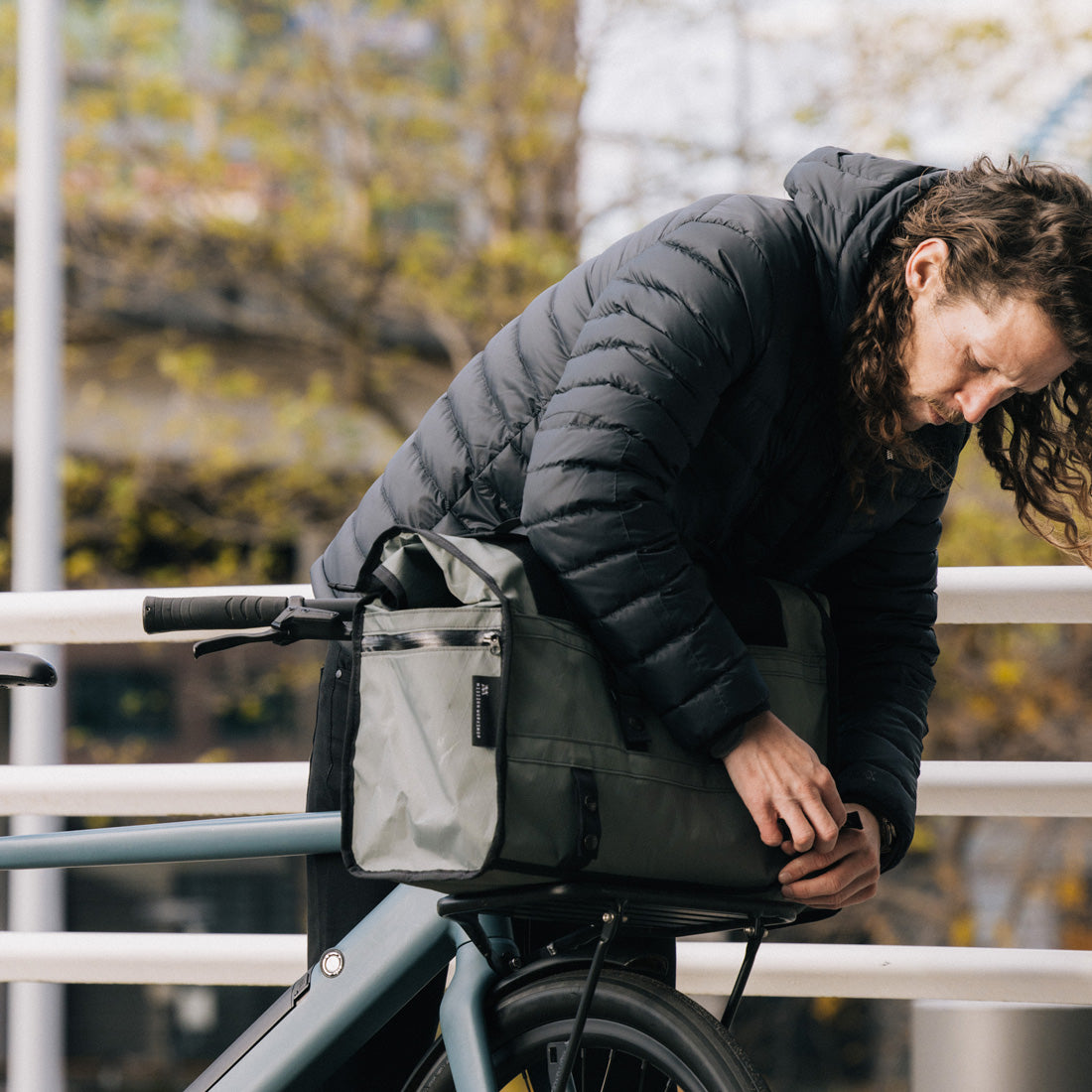 Además de ser una bolsa de viaje ideal como equipaje de mano, la Helmsman se acopla fácilmente a los portabicicletas delanteros de estilo porteur para convertirse en una compañera ideal para el ciclismo en condiciones meteorológicas adversas.