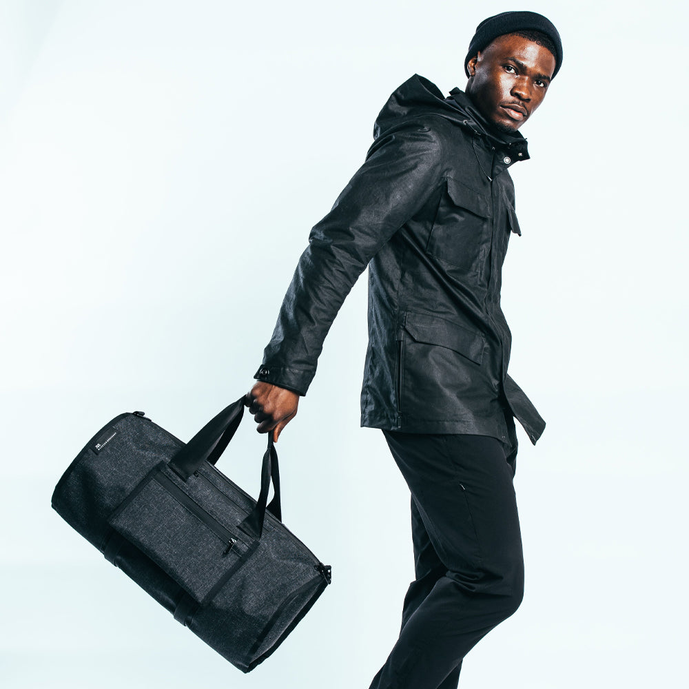 Una bolsa de estilo manifiesto ideal para todos tus cordones, bolígrafos, un pasaporte y una moleskine.