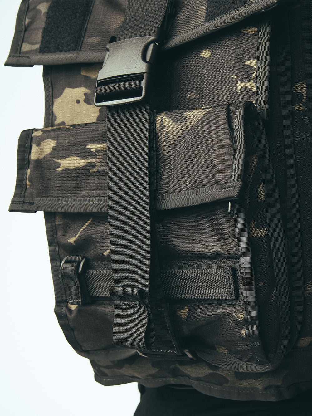 Dispone de un bolsillo con cremallera recubierto de uretano y un riel anexo para añadir la bolsa multiusos si se desea. Las trabillas para el cinturón y la correa con cierre en U le permitirán utilizar este accesorio como mochila portaherramientas.