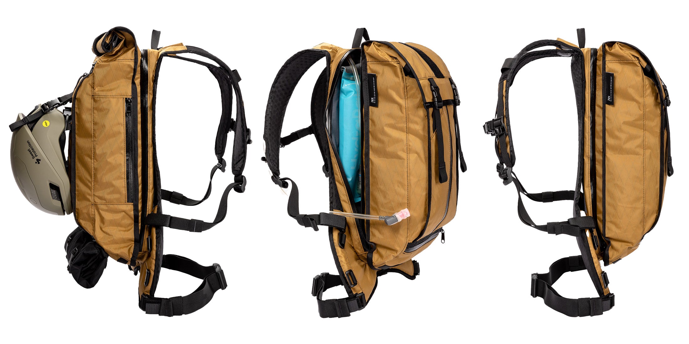 La mochila de hidratación tiene un total de cuatro bolsillos exteriores resistentes a la intemperie para facilitar el acceso al equipo, y el portaherramientas incluido es totalmente extraíble y organiza todo lo esencial. Una serie de correas externas se pueden desplegar para sostener un casco, almohadillas o numerosos otros equipos.