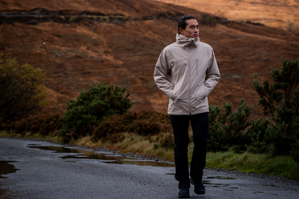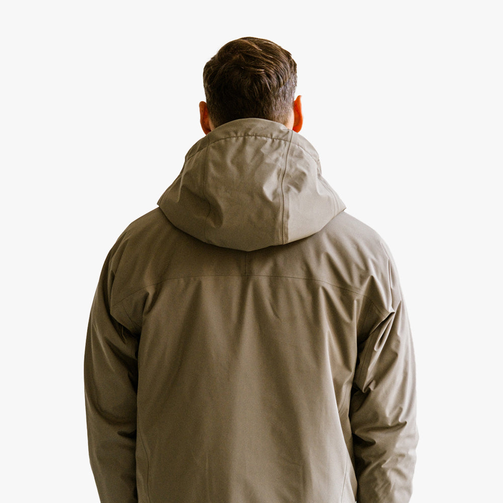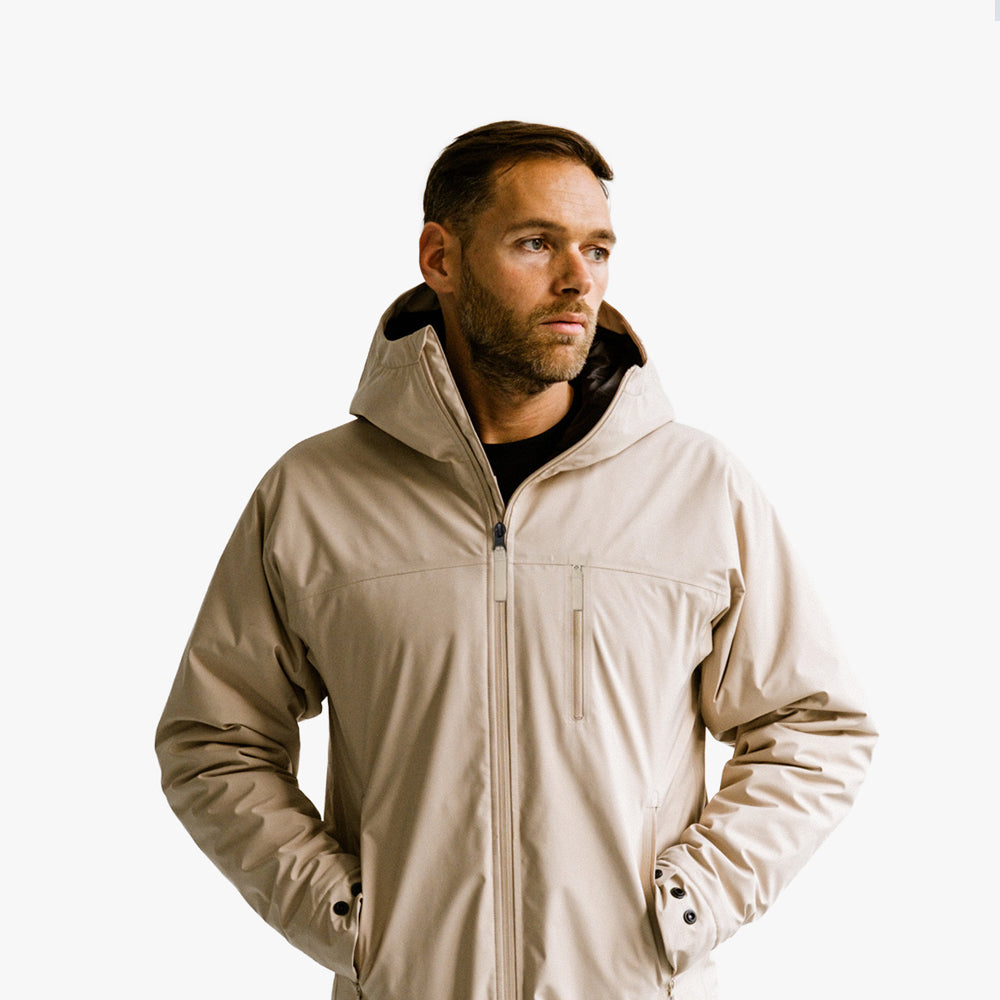 La capa exterior de 3 capas está totalmente sellada y cuenta con una membrana que permite la evacuación del vapor de agua al tiempo que impide la entrada de la lluvia, trabajando en sinergia con el aislamiento PrimaLoft para regular la temperatura corporal. La capa exterior está tratada con un DWR (repelente al agua duradero) C0 respetuoso con el medio ambiente que ayuda a repeler la lluvia.