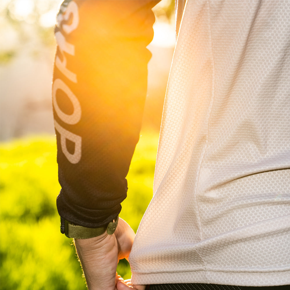 La mejor evacuación del sudor se consigue gracias a dos hilos diferentes que crean un diferencial que aleja la humedad del cuerpo. Funciona perfectamente como capa base, como alternativa al maillot o simplemente como camiseta de manga larga de alto rendimiento.