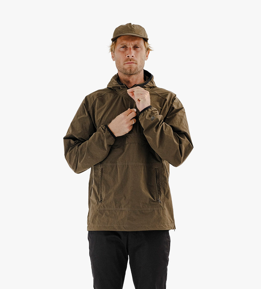 The Mission Anorak blends classic design and manufacturing in Portugal with performance woven textiles from Italian mill Olmetex. The fabric has a crisp durable hand and is finished with a PFC-free DWR for weather resistance and quick drying. Woven to perfection in Italy using a precise combination of materials: 49% polyester for durability and quick drying, 33% nylon for structural integrity, and 21% cotton for breathability and softness.
