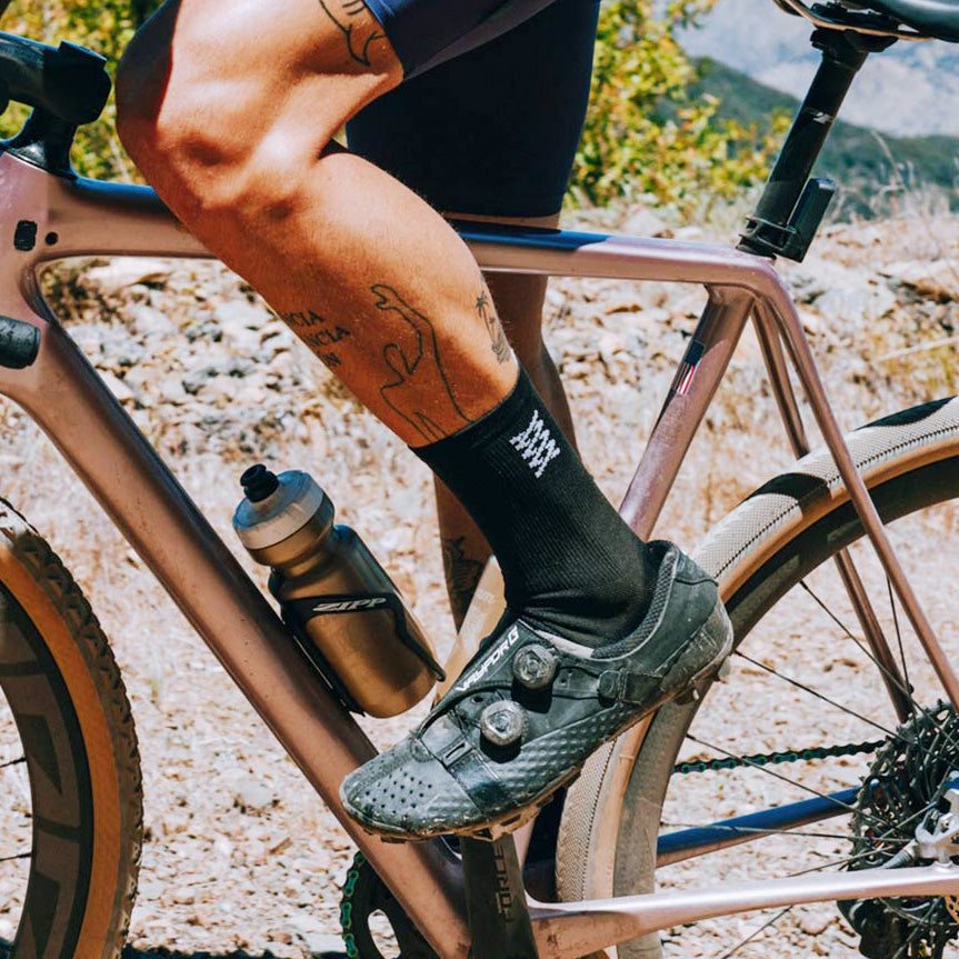 La construcción de punto acanalado de la parte superior sujeta perfectamente la pantorrilla y la elasticidad envuelve los pies, lo que hace que los calcetines sean ideales para las actividades más extenuantes. Aunque están diseñados para actividades de alto rendimiento, su discreta marca permite utilizarlos a diario para casi cualquier uso.
