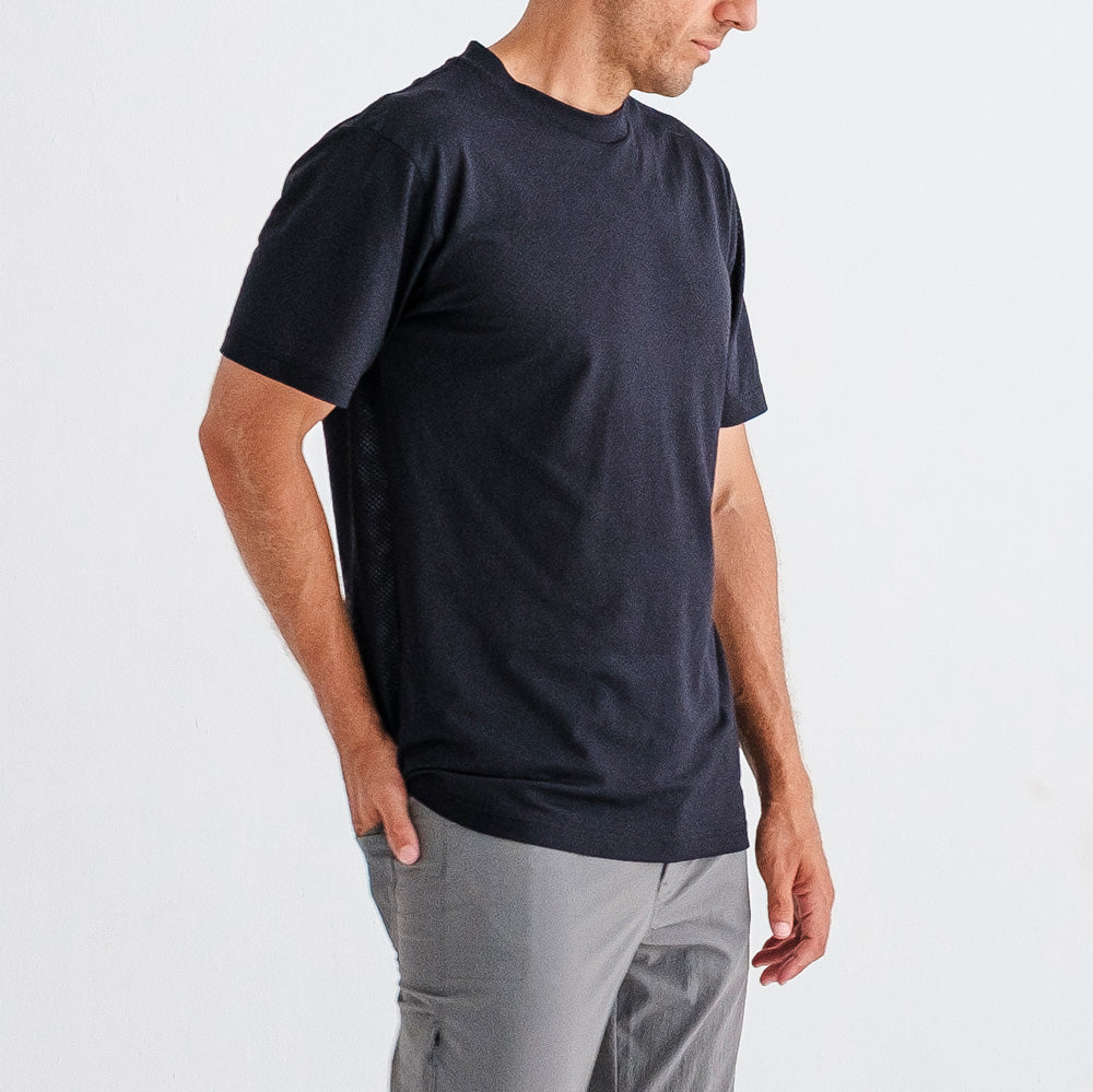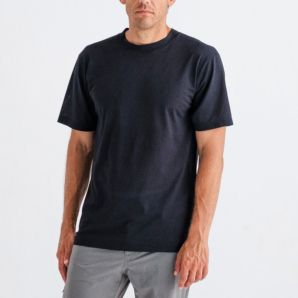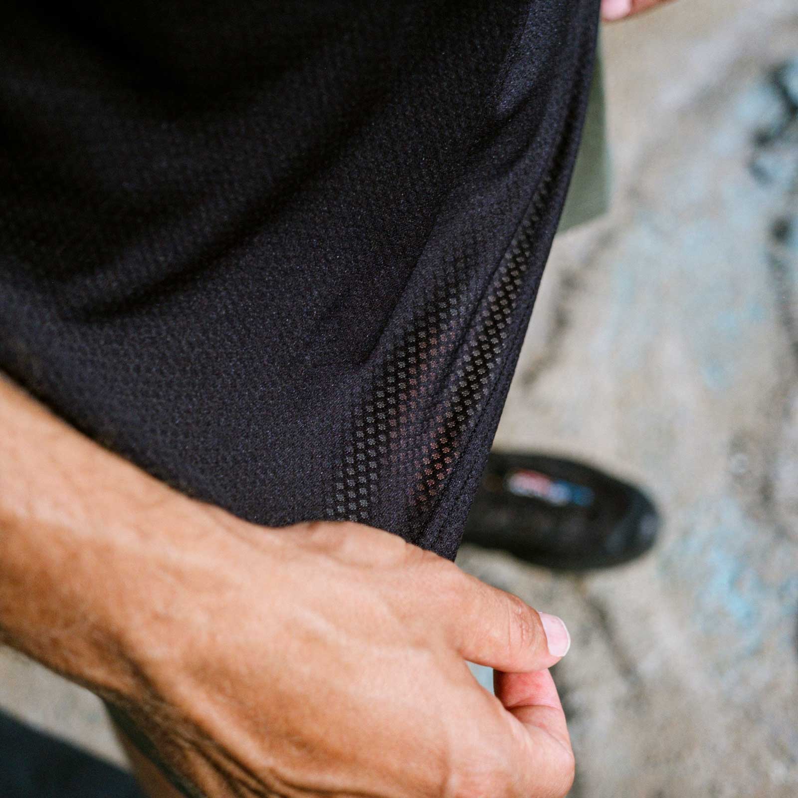 La camiseta Mission Tee: Quick Dry está confeccionada con malla dimensional italiana de punto abierto, diseñada para mejorar la superficie y ofrecer una transpirabilidad excepcional. Su construcción de doble hilo aleja eficazmente la humedad del cuerpo, manteniéndote seco y cómodo en todas las condiciones.