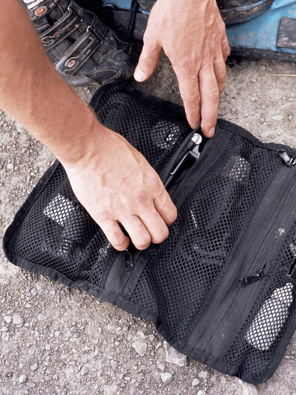 La mochila de hidratación tiene un total de cuatro bolsillos exteriores resistentes a la intemperie para facilitar el acceso al equipo, y el portaherramientas incluido es totalmente extraíble y organiza todo lo esencial. Una serie de correas externas se pueden desplegar para sostener un casco, almohadillas o numerosos otros equipos.