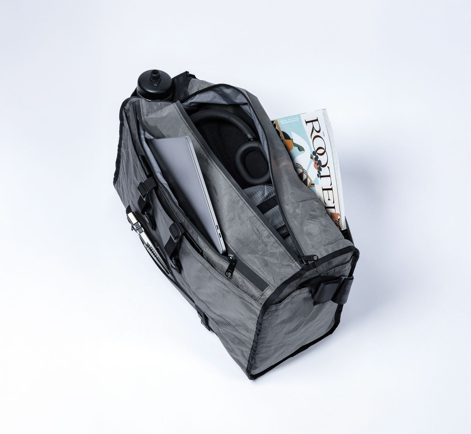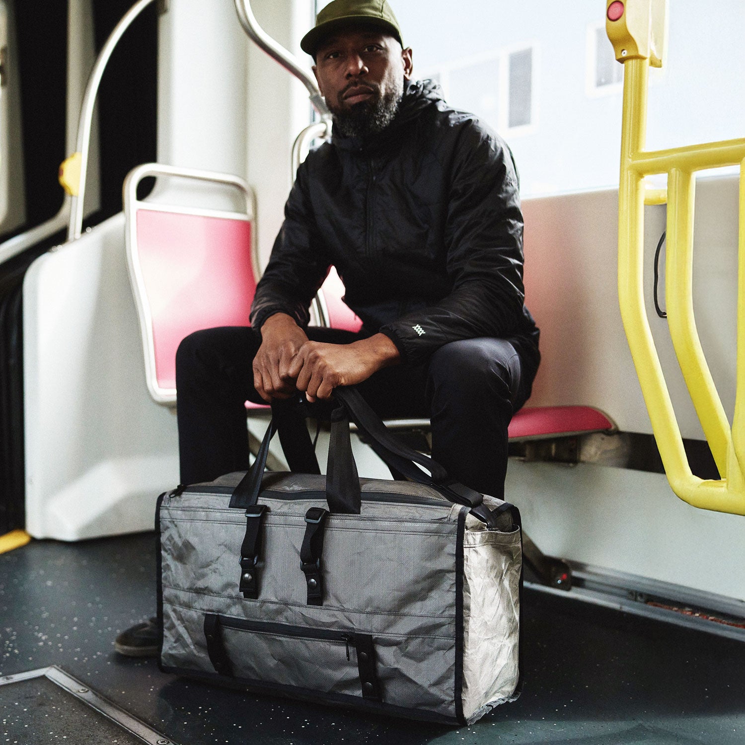 The Mass Transit is now available in Ultra for a limited production run. Our largest duffle offers twenty-five percent more capacity than the standard Transit. Designed for travel, it delivers a balance of minimal weight and high durability, made with Challenge Sailcloth Ultra 200X, a high-performance laminate that combines UHMWPE (Ultra High Molecular Weight Polyethylene) with recycled polyester film. The result is a fabric with an outstanding strength-to-weight ratio, excellent abrasion resistance, and reliable water resistance.